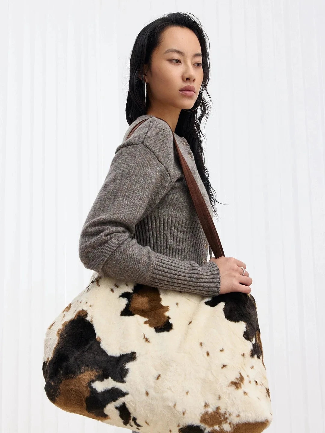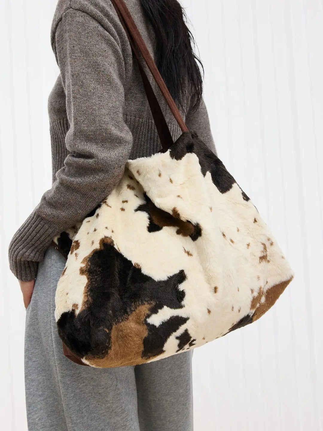 Cow Print Plush Tote – That Fluffy Bag Everyone Wants