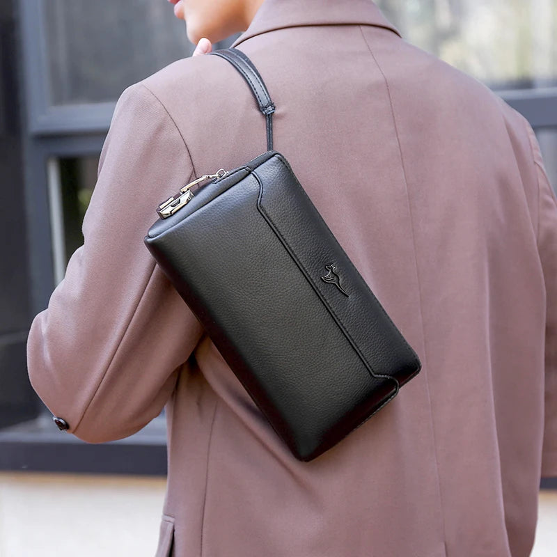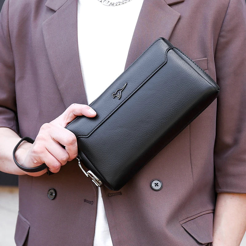 Crafted from premium vegan leather, this men’s wallet clutch offers both style and functionality. Its sleek, structured design features a soft, pebbled texture, adding a touch of luxury to your everyday style. The compact yet spacious interior provides organized compartments for cards, cash, and small valuables, making it ideal for both casual and business occasions.