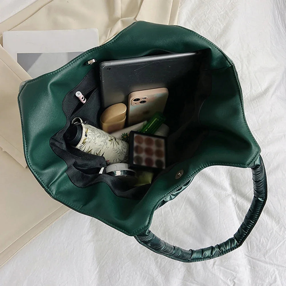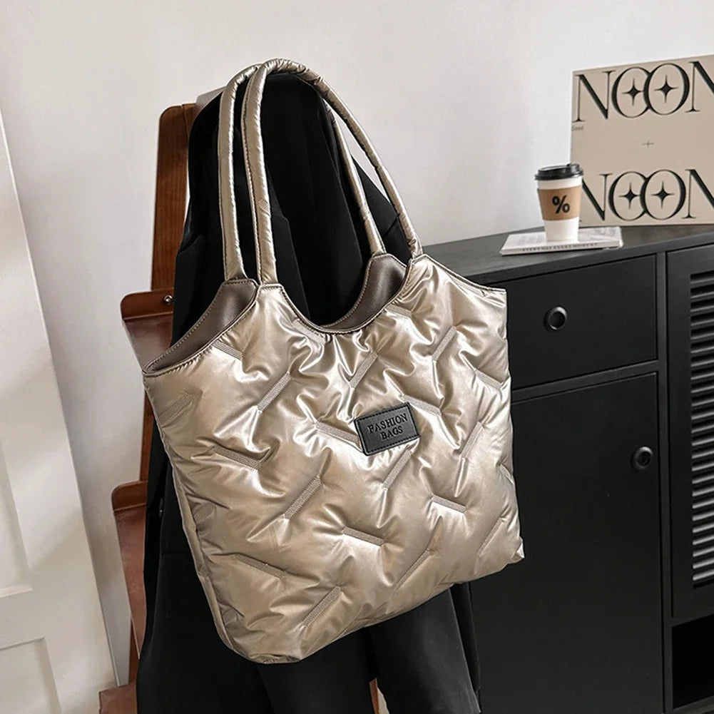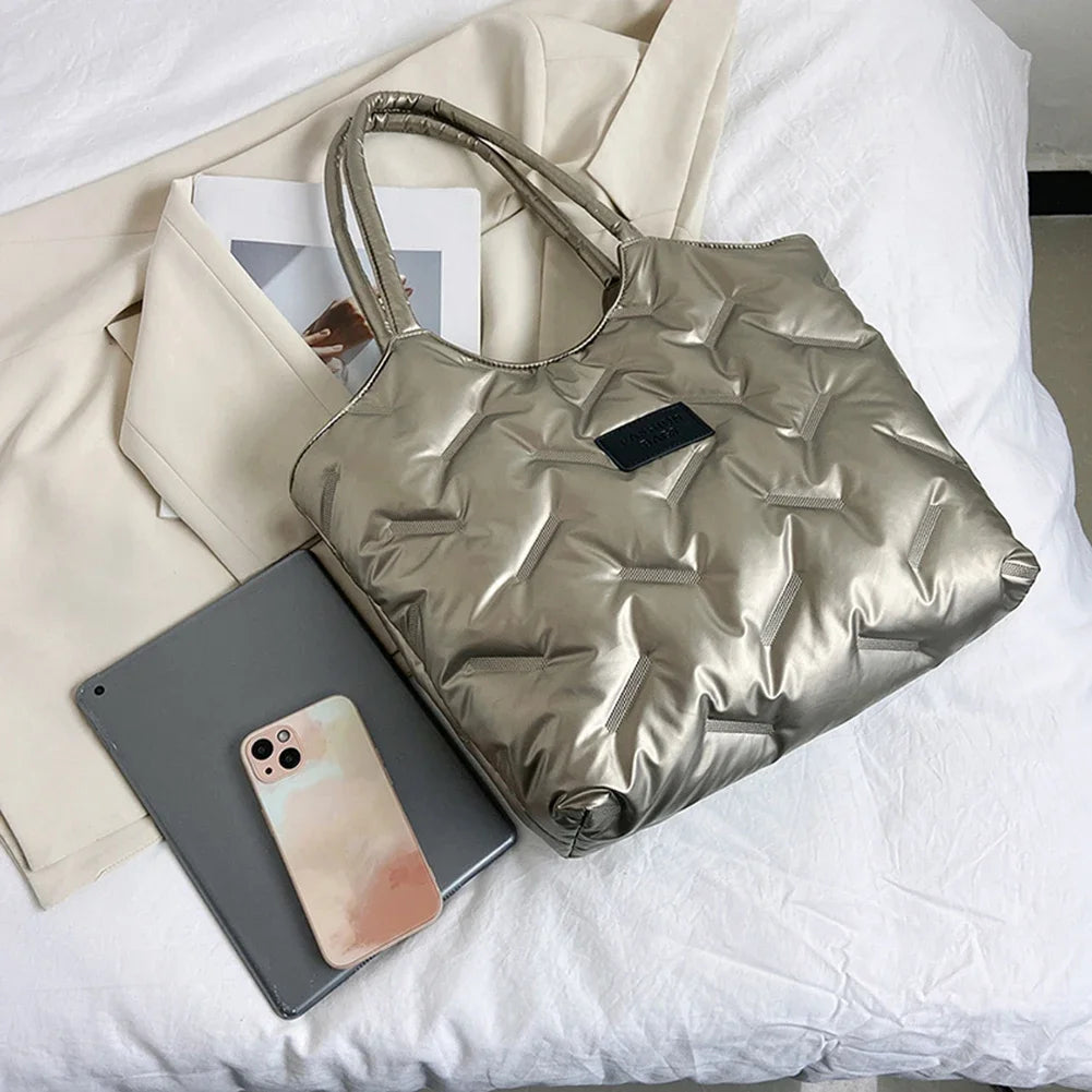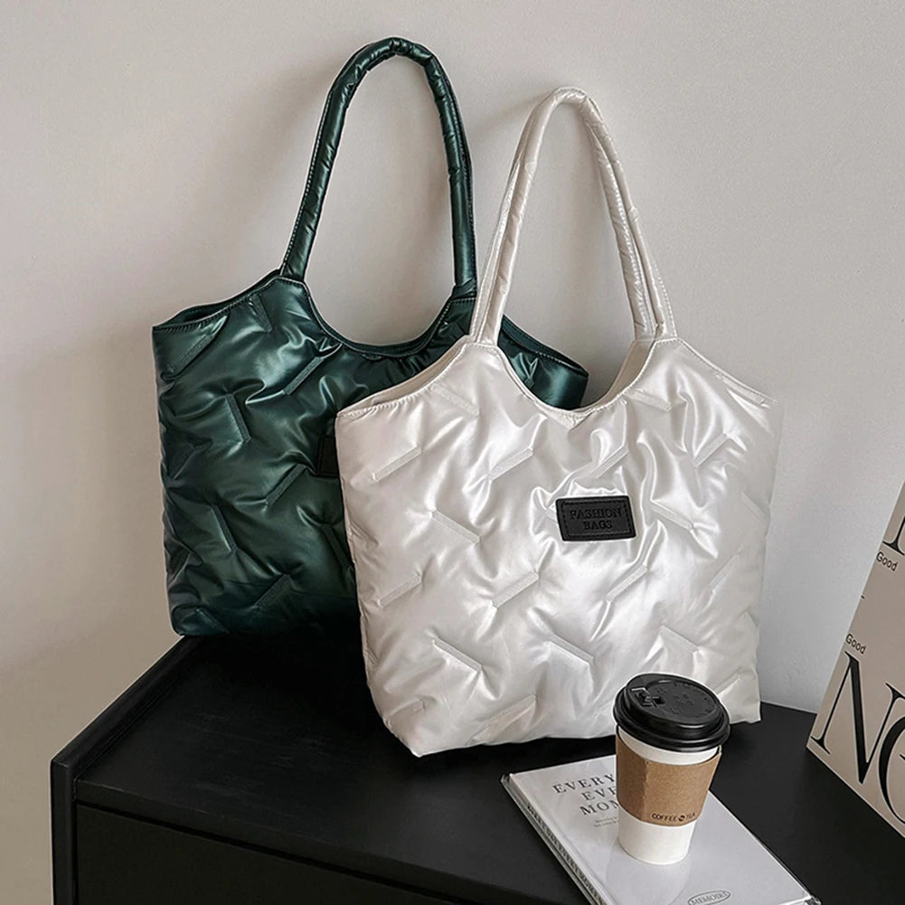 Stay stylish and cozy with this Women’s Padded Tote Bag, a perfect blend of fashion and function for the winter season. Crafted with a puffer-style quilted design, this bag offers a soft, padded feel that’s both on-trend and practical. Its spacious interior provides ample room for all your essentials, making it ideal for shopping trips, work, or daily errands. This bag is the ultimate accessory for fashion-forward women who prioritize both comfort and style.